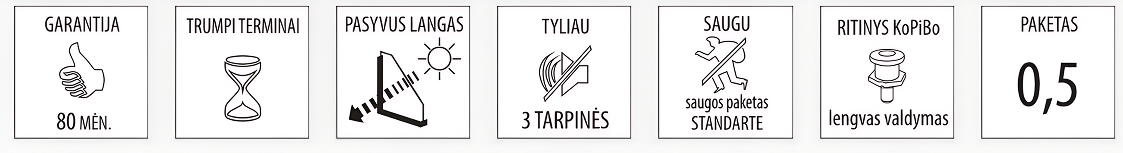 Galimybė naudoti iki 48 mm pločio stiklo paketus