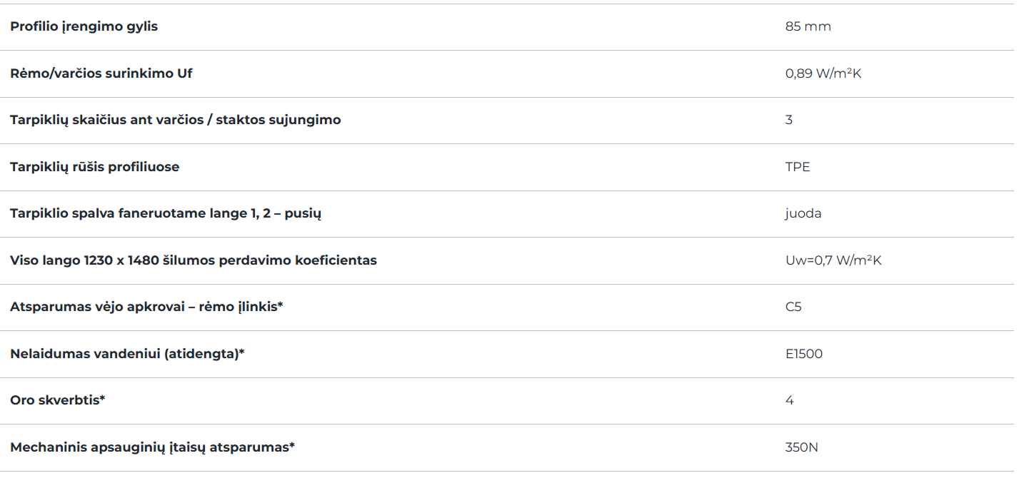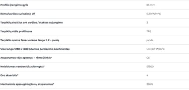 Profilių šilumos izoliacijos koeficientas Uf = 0,9 W/m²K