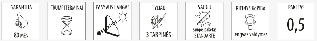 Turto apsauga dėl RC2 klasės (galimybė užsisakyti); tokio tipo sprendimas tiesiogiai susijęs su ES rekomendacijomis mažinti šiltnamio efektą sukeliančių dujų išmetimą į atmosferą (šis langas tiesiogiai prisideda prie šiluminės energijos sąnaudų mažinimo).