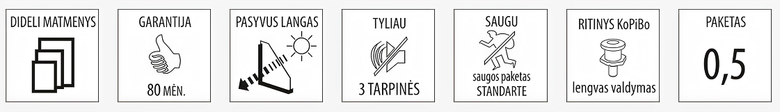 Geresnė garso izoliacija – dėl klijuoto stiklo ir trigubos tarpinių sistemos užtikrinamas aukštesnis akustinis komfortas.