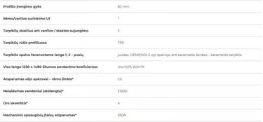 Profilių šilumos izoliacijos koeficientas Uf = 1,0 W/m²K